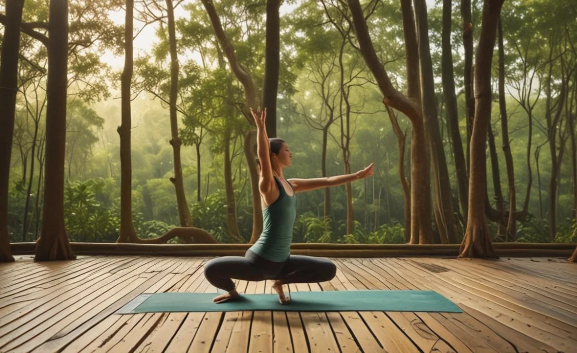 Practicing yoga in a forest canopy is special because you are surrounded by tall trees and fresh air. This makes you feel more relaxed and connected to nature. The sounds of birds and gentle winds can help you focus better. Plus, it’s really fun to do yoga outside where you can feel the sun on your face and see the sky.