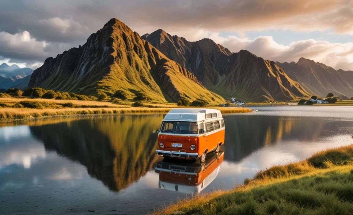 Next, head south to Wellington, the capital city, which has cool museums and fun parks. For the South Island, drive from Picton to Queenstown. On the way, see beautiful mountains and the famous Milford Sound. Enjoy the adventure!”}},{“@type”: “Question”,”name”: “What Are The Essential Items And Gear To Pack For A Campervan Trip Across New Zealand? “,”acceptedAnswer”: {“@type”: “Answer”,”text”: “When you go on a campervan trip across New Zealand, you need some important items. First, pack clothes for different weather, like warm jackets and comfy shoes. Don’t forget food and snacks! We should also bring cooking gear, like pots and pans. Finally, take a map or a GPS to help us find our way!”}},{“@type”: “Question”,”name”: “How Do You Find Suitable Campgrounds And Parking Areas For Campervans Throughout New Zealand? “,”acceptedAnswer”: {“@type”: “Answer”,”text”: “To find good campgrounds and parking areas for campervans in New Zealand, you can use maps or apps. We can look for signs while driving too. It’s smart to check travel websites for reviews and tips. Ask locals or other travelers for their favorite spots. Always make sure the place is safe and allowed for camping!”}},{“@type”: “Question”,”name”: “What Are The Driving Regulations And Road Conditions Like For Campervans In New Zealand? “,”acceptedAnswer”: {“@type”: “Answer”,”text”: “In New Zealand, we must follow the same driving rules in a campervan as in any car. Always wear seat belts and drive on the left side. Keep an eye out for signs that might tell us about sharp curves or steep hills. Roads can be narrow, and we may see sheep or other animals crossing. It’s important to drive slowly in crowded areas and be careful on winding roads.”}},{“@type”: “Question”,”name”: “Are There Any Specific Tips For Saving Money While Traveling Through New Zealand In A Campervan? “,”acceptedAnswer”: {“@type”: “Answer”,”text”: “Sure! To save money while traveling in a campervan in New Zealand, you can cook your own meals. Buying groceries is cheaper than eating out. Also, use free camping spots when you can. Look for discount deals on fun activities. Lastly, plan your trip during the off-peak season for lower prices!”}}]}